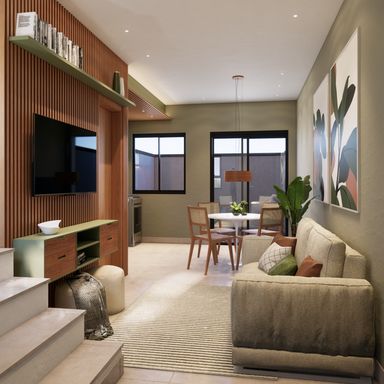 Se você está em busca de conforto, praticidade e um lar cheio de charme, essa casa em condomínio no bairro do Taboão pode ser exatamente o que procura! Com 80 m² de área construída, ela foi pensada para oferecer praticidade e aconchego no dia a dia. São 3 dormitórios bem distribuídos, sendo uma suíte com armário planejado e uma varanda ideal para aquele momento de descanso. Os banheiros são modernos, com armários sob medida e box de vidro, garantindo organização e funcionalidade. A sala de estar é integrada, conta com painel planejado e uma charmosa mesa de jantar embutida, perfeita para receber amigos e familiares. A cozinha, equipada com armários planejados, é prática e cheia de estilo. Além disso, a casa conta com um lavabo super funcional para visitas — mais comodidade e privacidade para a família. Já o quintal oferece um espaço delicioso com área de churrasqueira coberta — ideal para curtir os finais de semana em boa companhia. A lavanderia é externa e bem ventilada, e a casa conta ainda com 2 vagas de garagem. Recém-construída, essa casa está em um condomínio tranquilo e acolhedor, com piscina, salão de festas, quadra gramada e portaria remota. Tudo isso a menos de 5 minutos do Centro de São Roque, com padaria, mercado, farmácia e posto de gasolina bem pertinho. Uma excelente opção para quem valoriza bem-estar, segurança e uma boa localização!