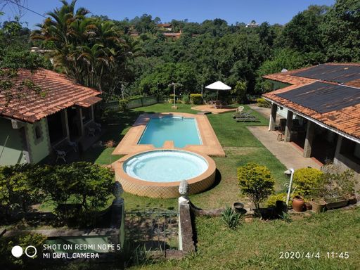 Lindíssimo sítio à venda na charmosa cidade de São Roque, perfeita combinação entre natureza, conforto e potencial de investimento. Localizado próximo à renomada Estrada do Vinho, o imóvel está inserido em uma das regiões mais valorizadas da cidade, cercado por vinícolas, paisagens encantadoras e tranquilidade. A casa sede é espaçosa e acolhedora, ideal para receber família e amigos com muito conforto. Ela conta com sala de jantar, sala de estar com lareira, sala de TV, sala de jogos, um barzinho charmoso, lavabo, duas suítes duplex (totalizando 4 dormitórios), mais 5 dormitórios adicionais, 2 banheiros sociais e um sótão. A ampla varanda com acesso aos dormitórios proporciona um espaço arejado e perfeito para relaxar apreciando a paisagem. A parte funcional da casa conta ainda com cozinha e área de serviço. A propriedade também dispõe de duas casas para caseiros: a primeira com 2 quartos, sala, cozinha e banheiro, e a segunda com 1 quarto, sala, cozinha e banheiro — ótimas para apoio ou até para acomodar convidados com privacidade. Há ainda um depósito localizado abaixo da piscina, que oferece suporte extra para organização e armazenamento. A área externa é um verdadeiro convite ao lazer, com piscina, quiosque com área para churrasco, quadra poliesportiva e muito espaço ao ar livre, cercado pela natureza exuberante da região. Esse imóvel é uma excelente oportunidade tanto para quem sonha com uma casa de campo especial quanto para quem deseja empreender — seja com uma pousada acolhedora, locação de temporada ou outro projeto comercial. Um espaço versátil, em localização privilegiada, que une qualidade de vida e valorização imobiliária.