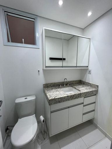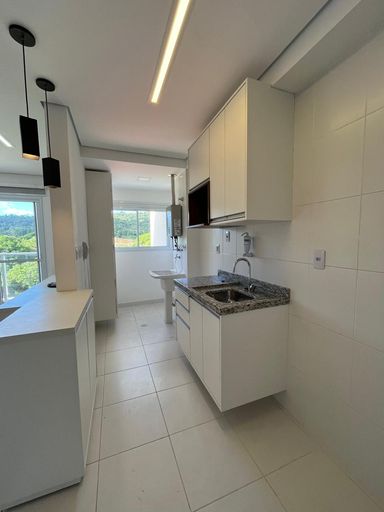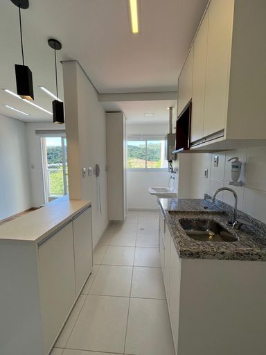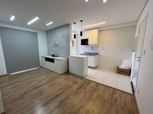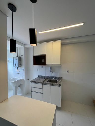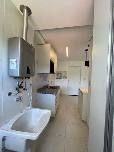 A cozinha americana, equipada com armários planejados, se integra à lavanderia, trazendo funcionalidade ao dia a dia. O apartamento dispõe ainda de 1 vaga de garagem, sistema de aquecimento a gás e preparação para instalação de ar-condicionado, oferecendo mais conforto aos moradores.