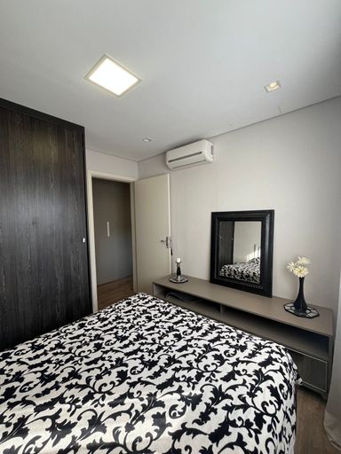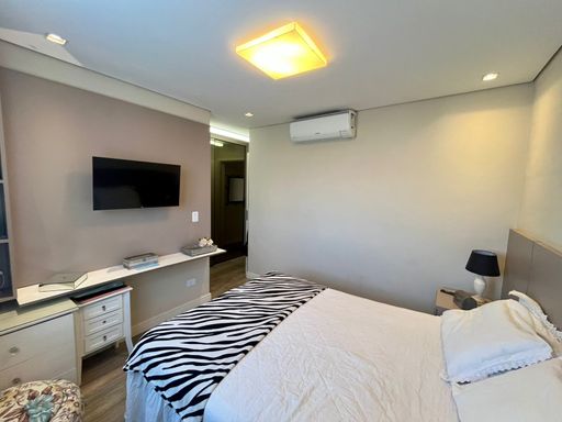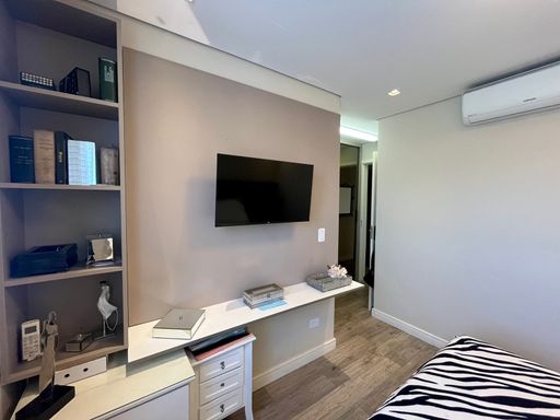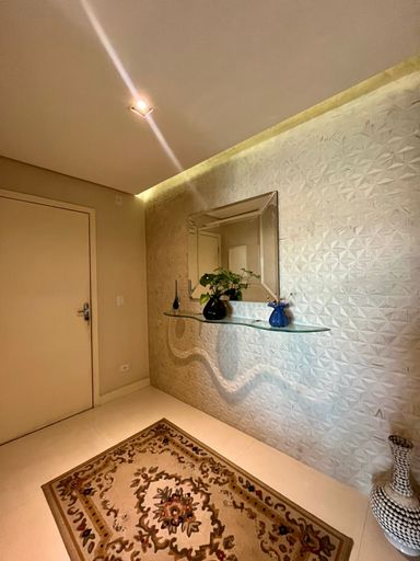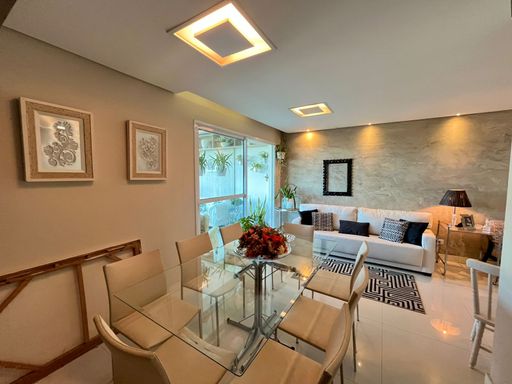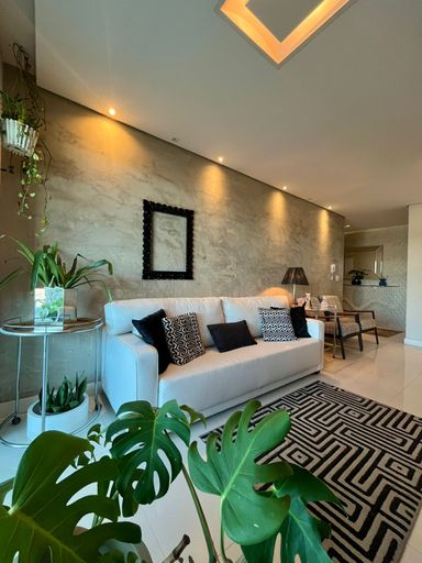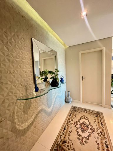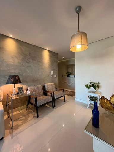 Logo na entrada, você é recebido por um hall elegante com revestimento 3D e iluminação acolhedora. A sala é ampla, comporta dois ambientes e se integra à varanda gourmet com churrasqueira, fechamento em vidro e uma vista panorâmica de tirar o fôlego da cidade — um verdadeiro convite para momentos especiais com amigos e familiares.