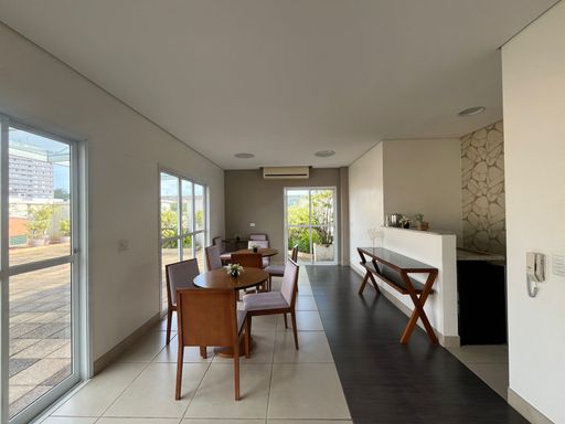 O condomínio oferece salão de festas equipado, banheiros de apoio, amplo espaço aberto na cobertura e churrasqueira, com área de lazer posicionada estrategicamente na cobertura, valorizando a vista da cidade. Conta ainda com elevador, garantindo acessibilidade a todos.