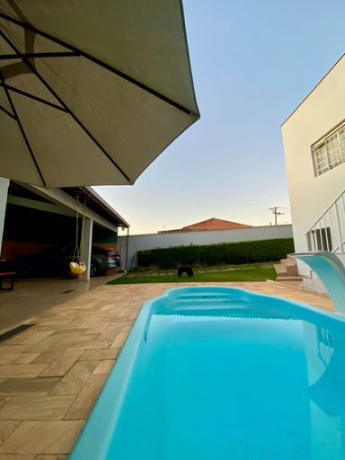 Na área externa, o destaque fica por conta da belíssima área gourmet com churrasqueira e armários, perfeita para reunir amigos e familiares. A piscina com aquecimento elétrico e cascata proporciona momentos de diversão e relaxamento em qualquer época do ano. O amplo quintal gramado oferece espaço para as crianças brincarem livremente ou para quem deseja ter um cantinho verde.