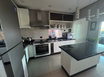 A área social é um verdadeiro convite à convivência: sala de estar com lareira para os dias mais frescos, sala de jantar integrada e uma charmosa sala íntima de TV, perfeita para momentos em família. Cozinha espaçosa com armários planejados e ilha central, perfeita para o dia a dia. Conta ainda com lavanderia funcional.