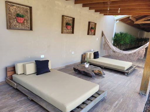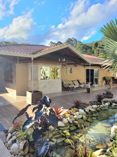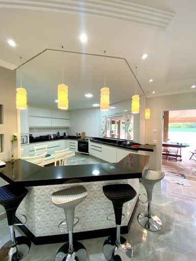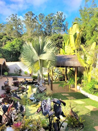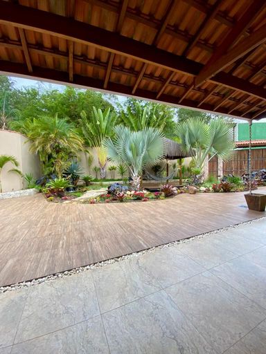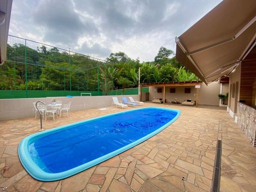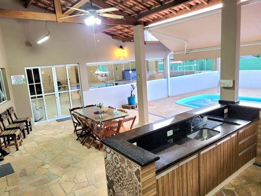 Na área externa, o destaque fica por conta do lindo lago ornamental com espaço de descanso sob uma charmosa cobertura rústica com redes, ideal para relaxar ao som da natureza. E quando o assunto é lazer, essa casa é imbatível: salão de festas, salão de jogos com pebolim, sinuca e ping pong, espaço gourmet com churrasqueira, piscina com aquecimento solar, quadra gramada e playground para a diversão de toda a família.