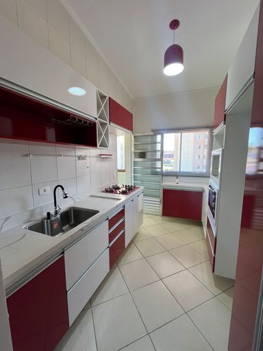 A cozinha é um encanto à parte: planejada, com bancada em quartzo calacata, cooktop e forno elétrico. A lavanderia também surpreende pelo espaço e pelos armários sob medida. E para os momentos de lazer, uma churrasqueira toda em inox pronta para receber bons encontros.