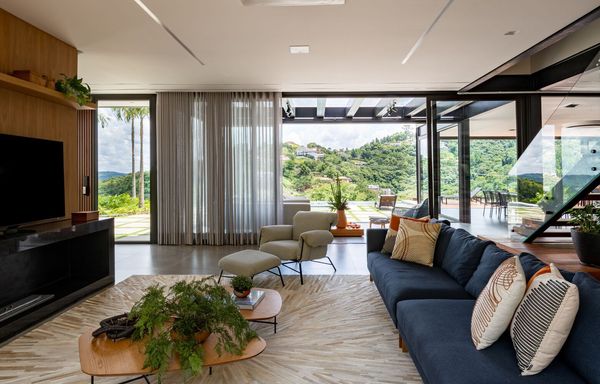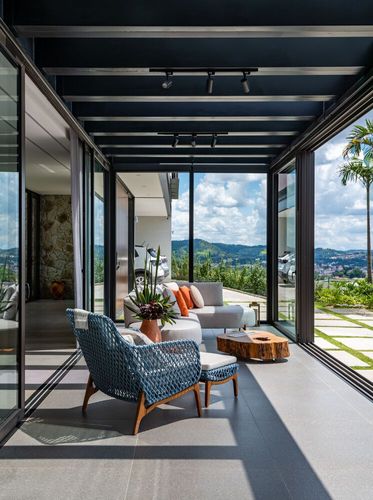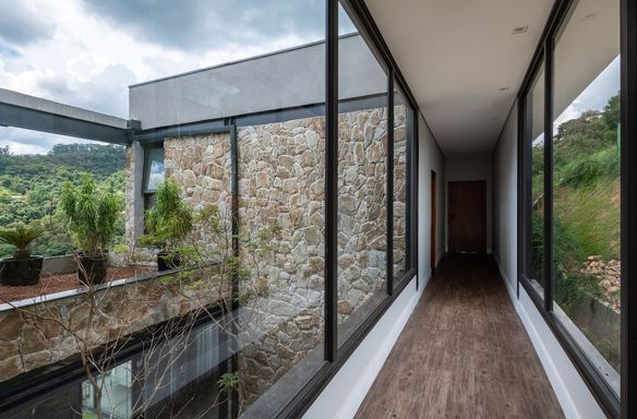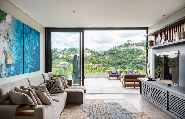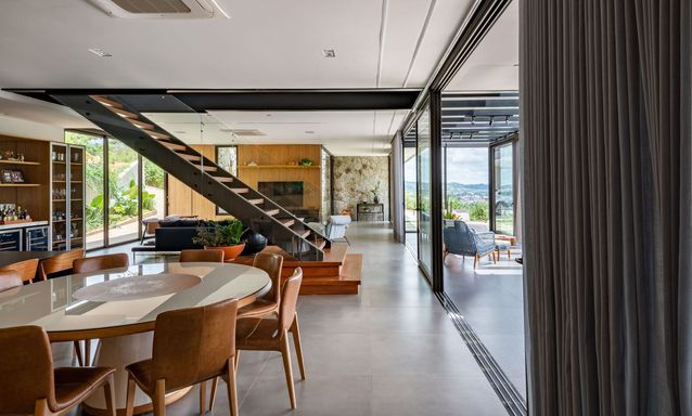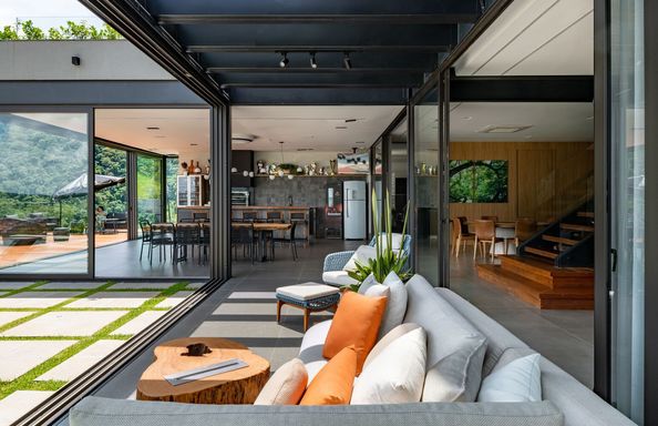 Com arquitetura moderna e marcante, a estrutura metálica se une a amplos painéis de vidro, criando ambientes iluminados e com vistas deslumbrantes para a mata preservada ao redor. A transparência e leveza dos espaços convidam à contemplação e ao bem-estar.