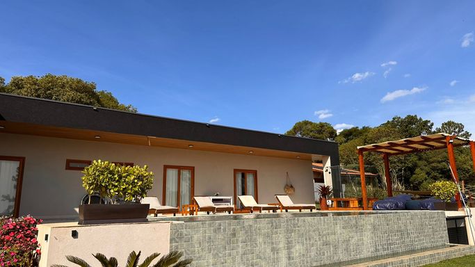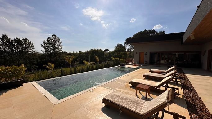 Apresentamos esta belíssima casa recém-construída (1 ano), projetada para quem busca viver com qualidade, sofisticação e tranquilidade em meio à natureza exuberante de Ibiúna, com acesso à marina náutica.