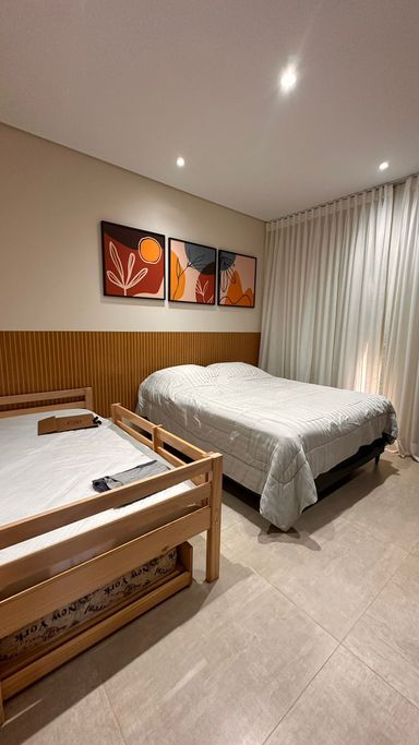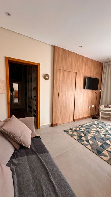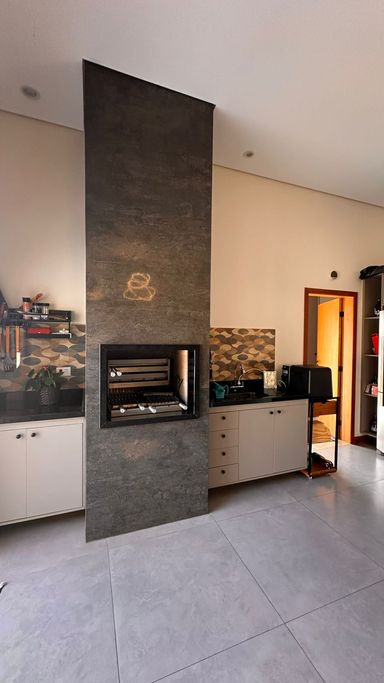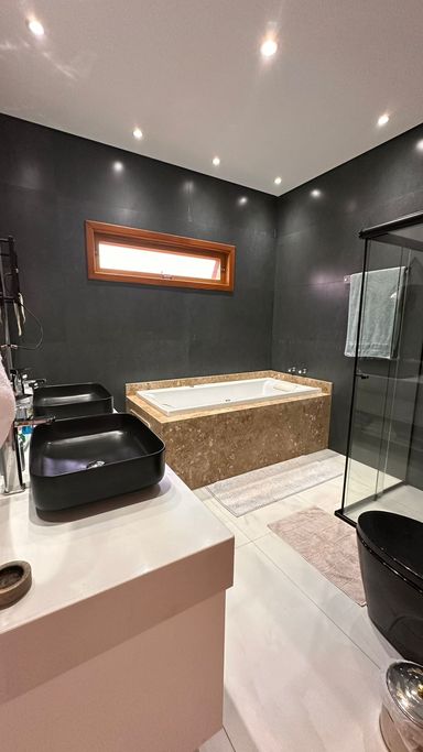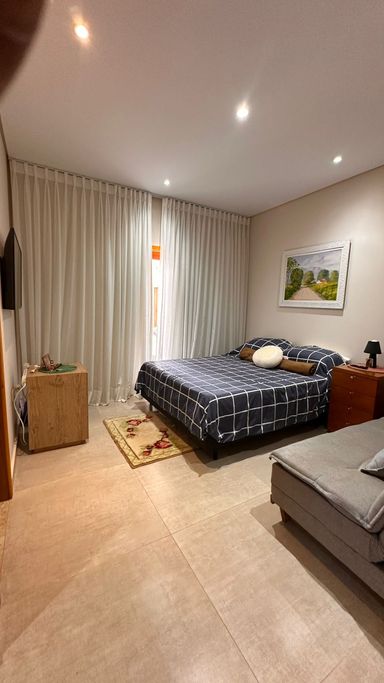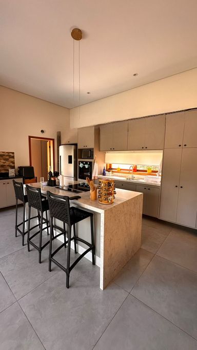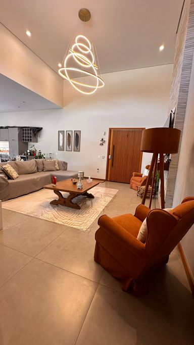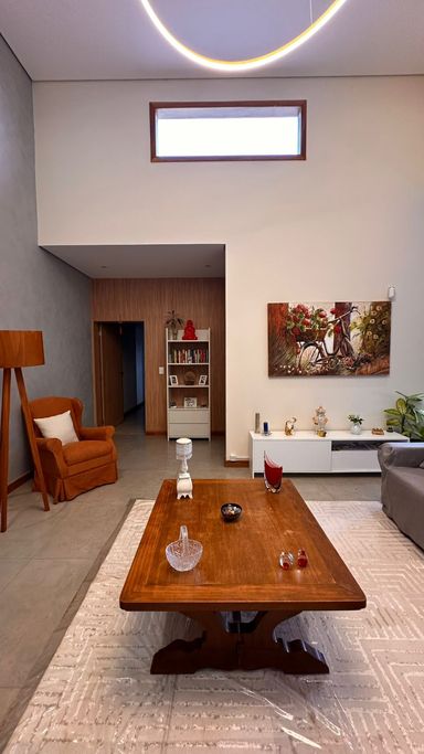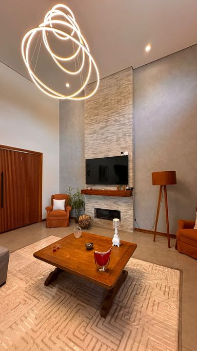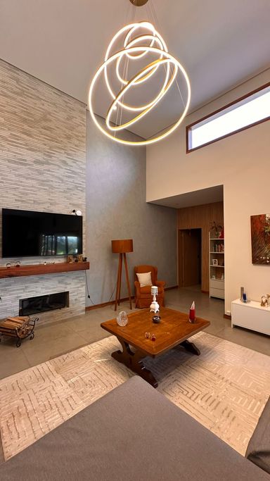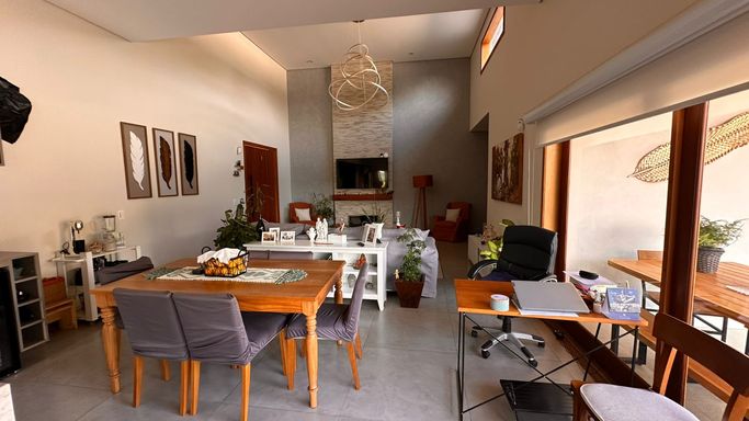 O imóvel dispõe de 3 suítes, sendo 1 suíte master com banheira de hidromassagem e ar-condicionado quente e frio, além de 2 suítes com móveis planejados. Possui sala de estar aconchegante com lareira e TV, integrada à sala de jantar, criando ambientes amplos e acolhedores. A cozinha integrada à área gourmet conta com móveis planejados, complementada por despensa e lavanderia com armários, além de 2 banheiros adicionais para maior comodidade.