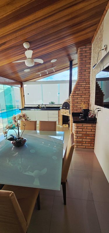 O destaque fica por conta da área gourmet com churrasqueira e forno de pizza — ideal para confraternizações — e da piscina, que completa o espaço com muito lazer e conforto. A casa ainda conta com ar-condicionado, móveis planejados e um acabamento impecável em cada detalhe.