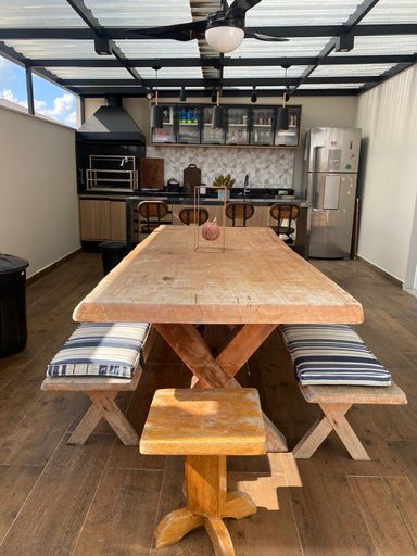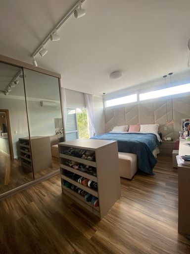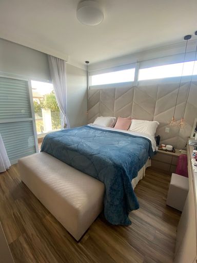 São 3 amplas suítes com armários planejados, varanda e ar-condicionado, sendo a suíte principal equipada com uma banheira de hidromassagem. A área social conta com uma imponente sala de estar com pé-direito alto, lavabo, sala de jantar e uma cozinha espaçosa com ilha central e armários planejados, integrada à área gourmet com churrasqueira — perfeita para receber amigos e familiares.