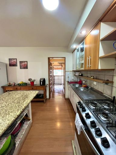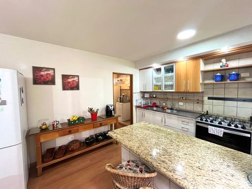 A cozinha americana, moderna e prática, é acompanhada por uma excelente despensa e uma lavanderia funcional. Na parte externa, o quintal conta com uma agradável área verde e uma churrasqueira, criando um ambiente ideal para curtir bons momentos com a família e os amigos ao ar livre.