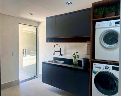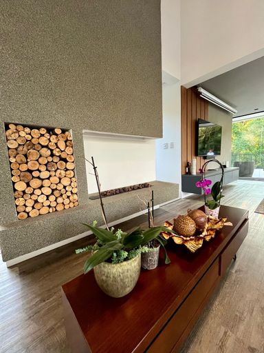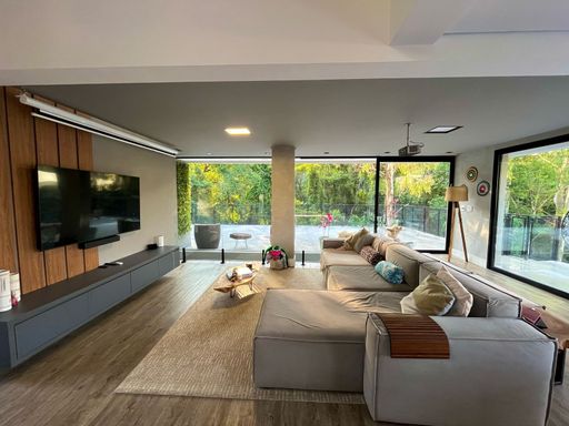 No subsolo, um espaço versátil completa esse lar. Com entrada independente (ou acesso interno), conta com uma suíte com closet, uma sala de estar com varanda voltada para a mata, uma cozinha integrada e uma sala adicional que pode ser transformada em Home Cinema, academia ou o que melhor se adaptar à sua rotina.