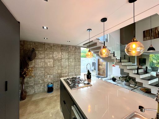 Com 775 m² de terreno e aproximadamente 1.000 m² de área construída, essa residência se destaca pelo bom gosto e pelo requinte.