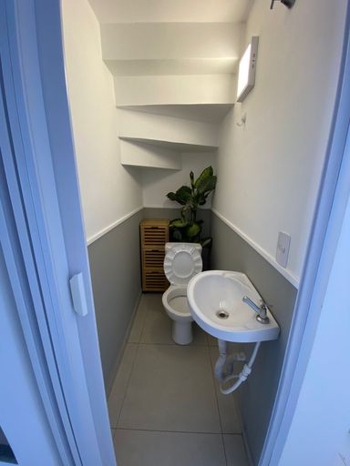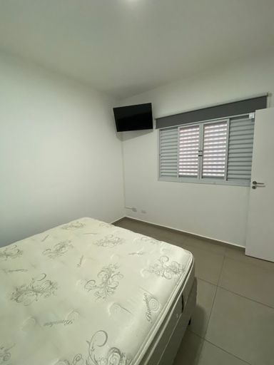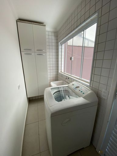O imóvel conta com dois dormitórios, ambos equipados com cama e guarda-roupas, além de banheiro social, lavabo, sala de estar aconchegante, e cozinha funcional com fogão, geladeira e armários planejados. A área de serviço dispõe de lavanderia com máquina de lavar e armário, proporcionando ainda mais comodidade no dia a dia.