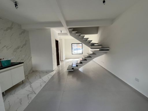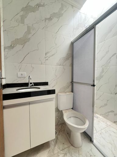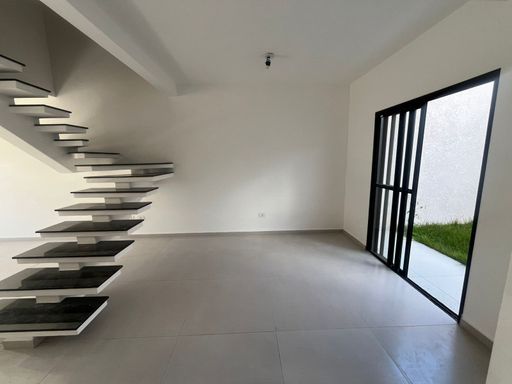 Com 80 m² de área construída, o imóvel é bem distribuído e funcional, contando com 3 dormitórios, sendo 1 suíte com varanda, banheiro social, lavabo, sala de estar aconchegante, cozinha prática, lavanderia externa, quintal privativo e 2 vagas de garagem.