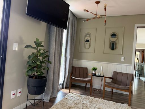 No subsolo, um espaço versátil completa esse lar. Com entrada independente (ou acesso interno), conta com uma suíte com closet, uma sala de estar com varanda voltada para a mata, uma cozinha integrada e uma sala adicional que pode ser transformada em Home Cinema, academia ou o que melhor se adaptar à sua rotina.