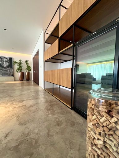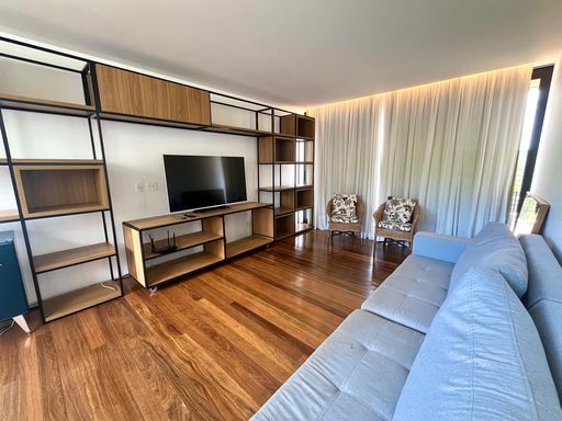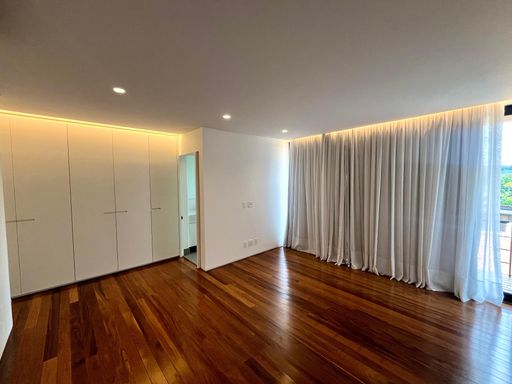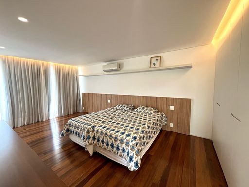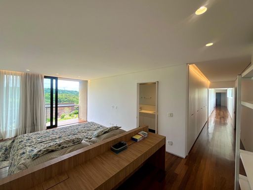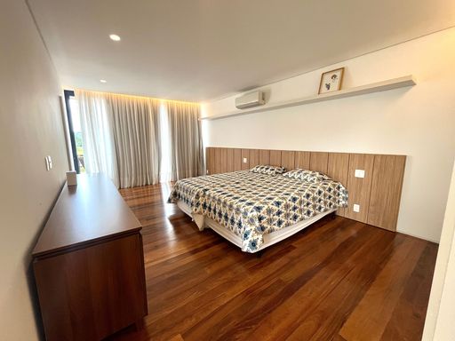 A área íntima é composta por 4 suítes amplas, sendo 3 delas com varandas privativas, armários planejados e ar-condicionado, perfeitas para relaxar ao final do dia. A suíte máster é um show à parte: além de espaçosa, conta com um escritório integrado, varanda com vista espetacular e um banheiro com duas cubas e duas duchas, trazendo funcionalidade e elegância. Há também uma sala de TV privativa com varanda, ideal para momentos de descontração em família.