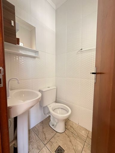 O imóvel conta com 2 dormitórios, banheiro social para atender os quartos, sala de estar integrada à cozinha, lavabo, lavanderia, quintal e 1 vaga de garagem coberta, oferecendo conforto e praticidade para o dia a dia.