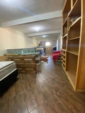Conta ainda com 2 dormitórios amplos: um com cama box de casal e armário, e o outro com 3 beliches e uma cama box de casal. Há também um banheiro interno.