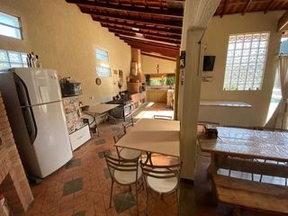 A casa é super aconchegante, com sala de TV, uma cozinha espaçosa com forno, e um salão enorme que acomoda cerca de 20 sofás-camas — perfeita para receber amigos e família com muito conforto.