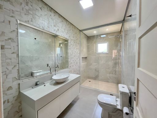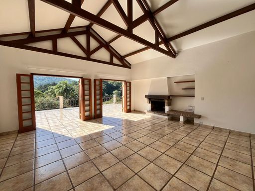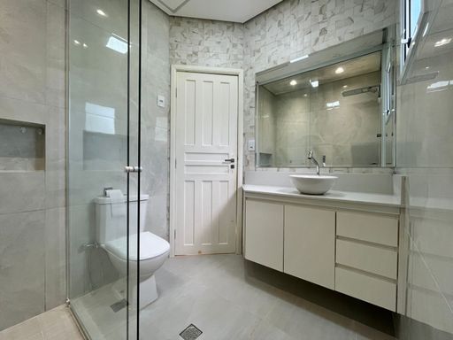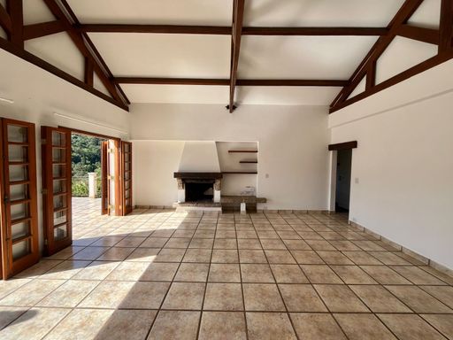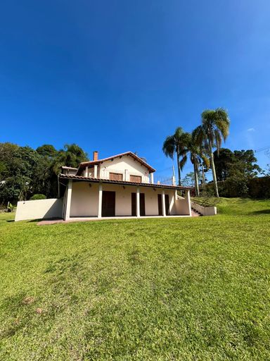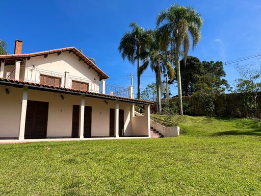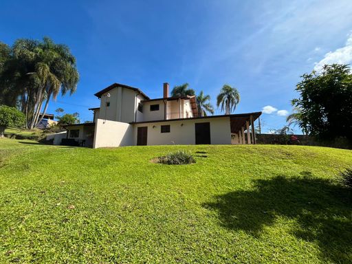 A casa principal, distribuída em dois pavimentos, oferece ambientes amplos, iluminados e muito acolhedores. O primeiro pavimento conta com um living espaçoso com três ambientes e lareira convida para momentos especiais com a família. A varanda integrada, com uma vista deslumbrante, é o cenário perfeito para relaxar ou receber amigos. A cozinha com armários planejados e despensa oferece praticidade no dia a dia.