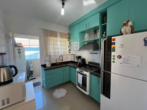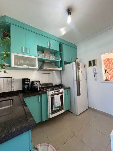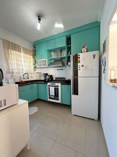 No piso inferior, o imóvel conta com 2 dormitórios aconchegantes, banheiro, ampla sala de estar, cozinha com armários planejados e lavanderia, proporcionando funcionalidade para o dia a dia.