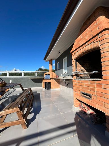 Já no piso superior, há uma sala versátil, perfeita para escritório, sala íntima ou quarto de hóspedes, além de banheiro adicional. O grande destaque fica por conta da ampla varanda com vista para a cidade, um espaço agradável para receber amigos e familiares, que conta ainda com churrasqueira e forno de pizza, ideal para momentos de lazer.