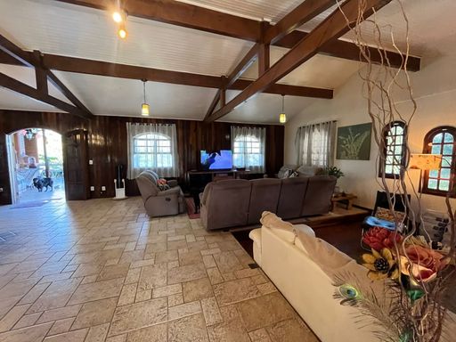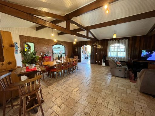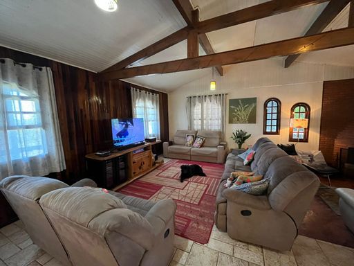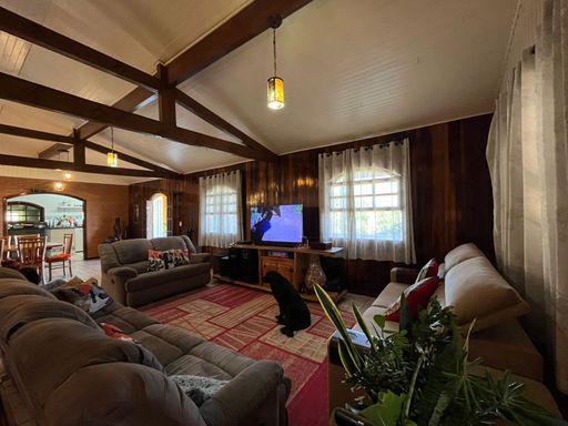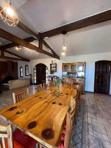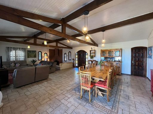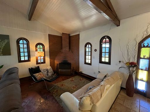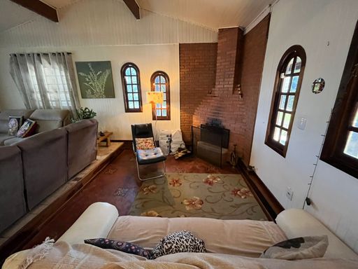 Uma ampla sala de estar, com 3 ambientes e lareira, perfeita para receber hóspedes e proporcionar momentos especiais