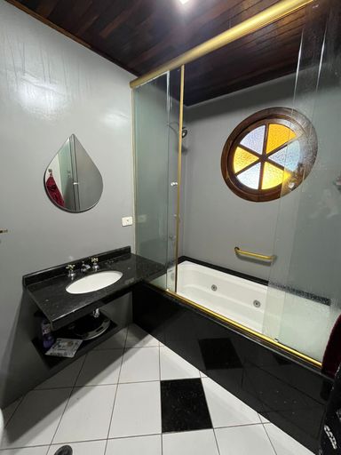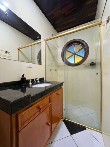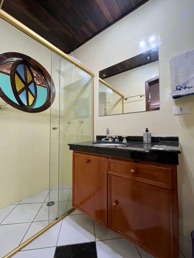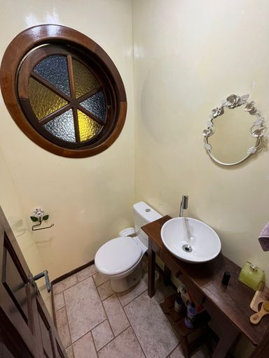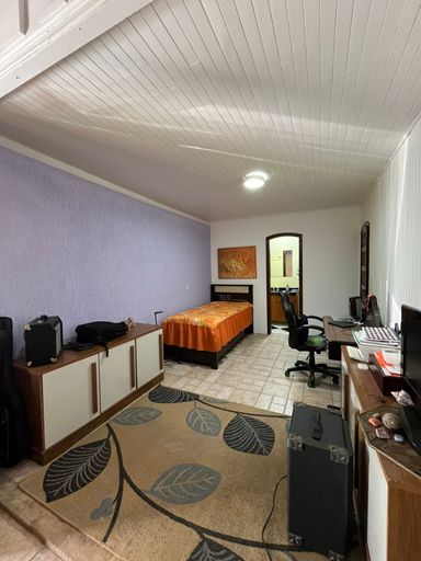 2 banheiros externos e amplo espaço de garagem, coberta para 3 automóveis, e várias outras vagas ao ar livre