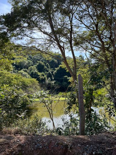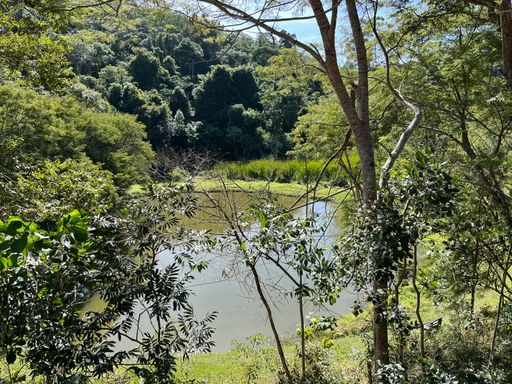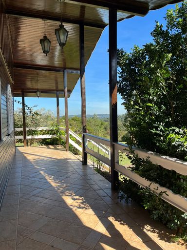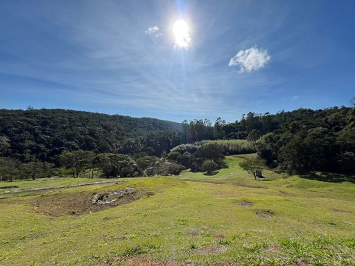 Mata nativa preservada, trilha ecológica até o mirante, pomar, plantação de eucalipto, campo de futebol e poço semi-artesiano
