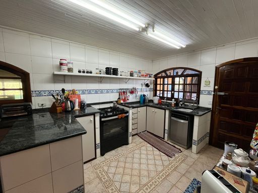 Cozinha espaçosa, equipada e pronta para atender tanto ao uso próprio quanto ao serviço de refeições