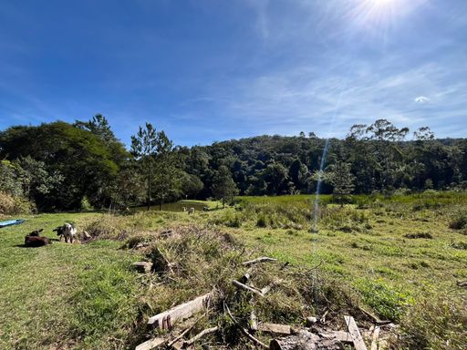 Uma bela área de 18.500 m² de interação com a natureza, com riacho, nascente, cachoeira para banho e um lago destinado à pesca esportiva